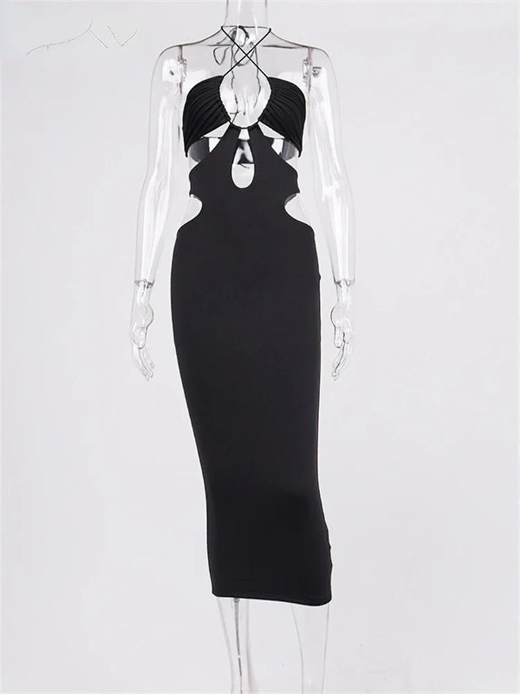 2024 Cut Out Party Evening Sexy Black Women’s 2024 Summer Hollow Out Halter Wrap Long Backless Midi Dress