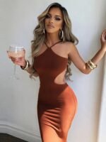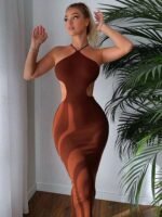 2024 Summer Halter for Women’s Sleeveless Backless Club Party Cutout Bandage Midi Dress Clothes Sexy